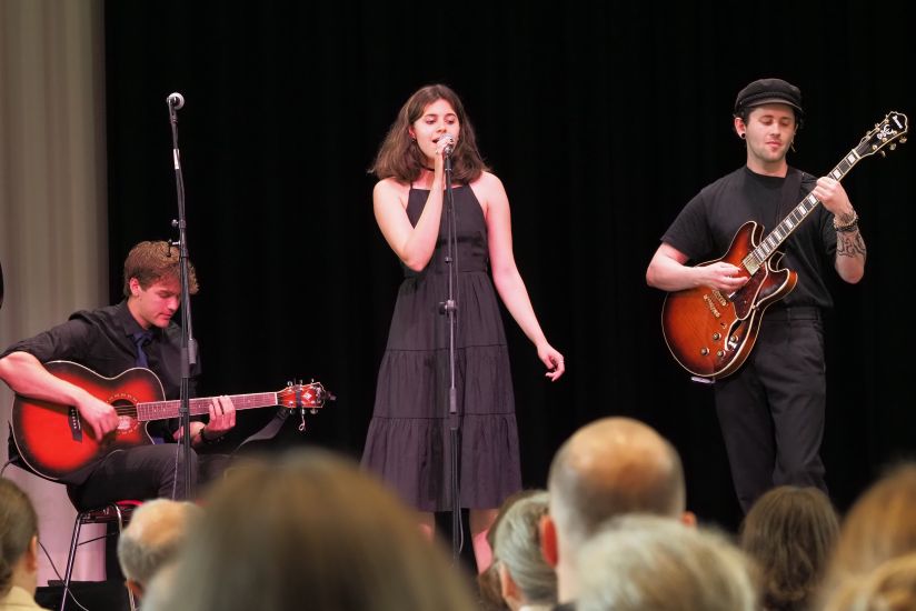 Und trotzdem haben wir es geschafft. Jetzt, wo wir hier stehen, in diesem Moment: Schaut zurück! Erinnert euch an diese ersten Tage der Matura. Und daran, dass alles, was damals so weit weg schien nun endlich da ist. Wir haben es geschafft.»